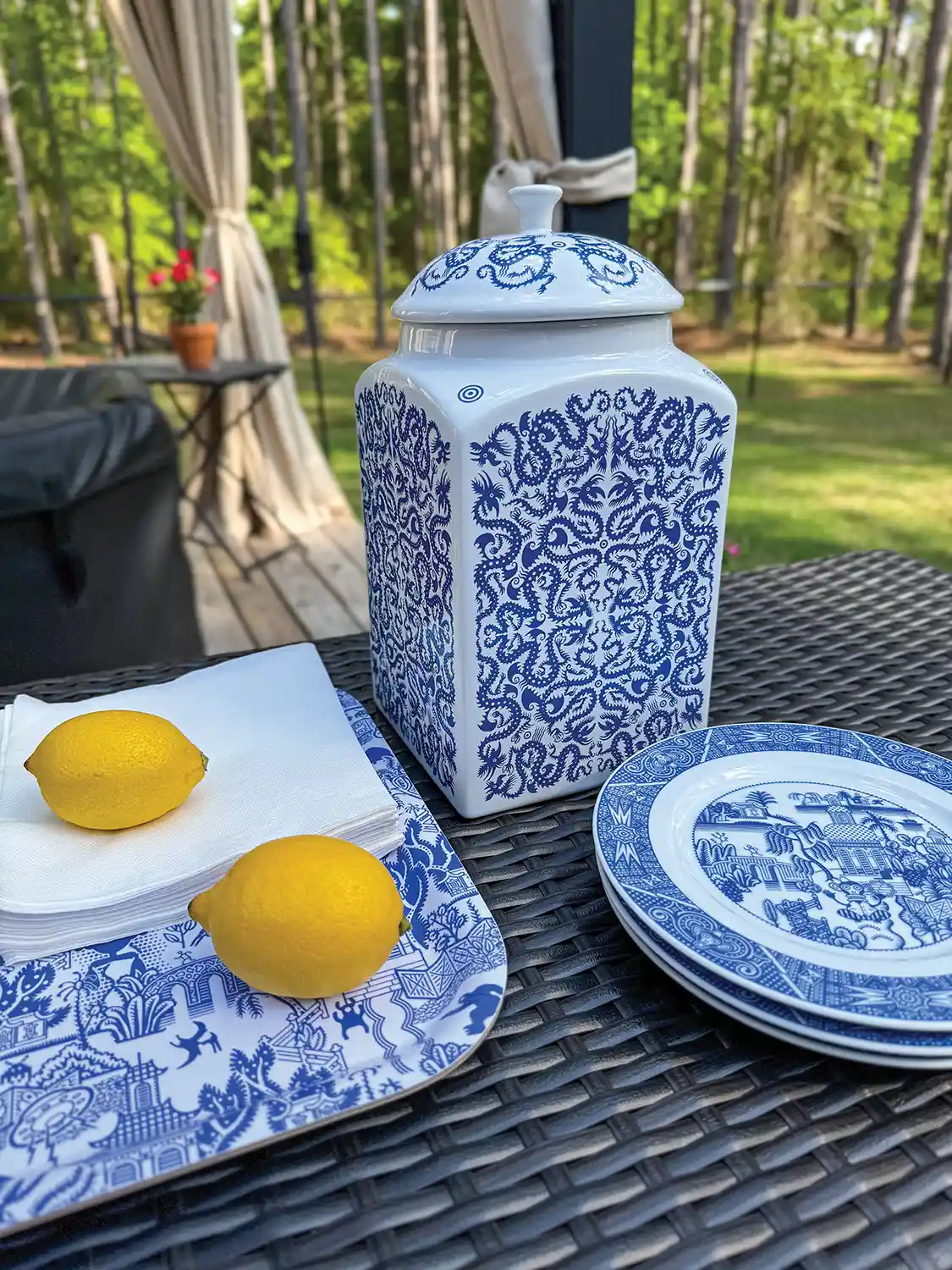 - Dining Essentials: If you have room, equip your outdoor space with a dining table and chairs or benches made with weatherproof materials. Having an eating area provides a central gathering point for meals with family and friends. Complete the setup with durable tableware, including outdoor-safe dishes, glasses, and utensils. At a recent small gathering, I enjoyed using my new Cookie Time Bundle set by Calamityware. The Things-Could-Be-Worse tray has a beautiful blue and white design. It is made from premium birch veneer and melamine, so it is beautiful, lightweight, and food safe. The Vigilant Dragons cookie jar is decorated with mystical, watchful dragons to protect your cookie stash from unauthorized withdrawals. The company even included a delicious recipe for PB Chocolate Chip Cookies to fill the cookie jar. The Dubious Musicians plates are adorable and the perfect size for snacks and desserts. They are made from fine porcelain with in-glaze decoration. To discover more beautiful, utilitarian, and funny products, visit their website at calamityware.com.