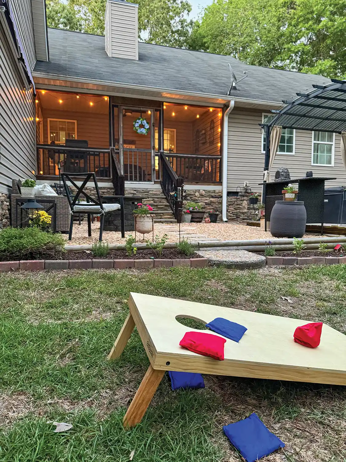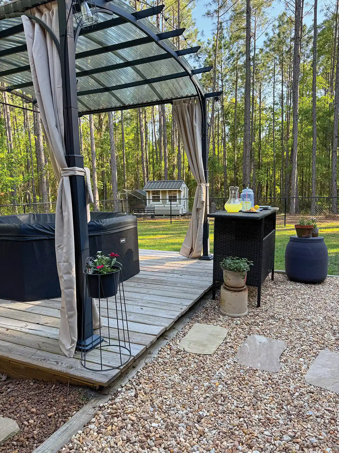 - Outdoor Kitchen or Bar Area: Enhance your entertaining capabilities with an outdoor kitchen or bar area. Install a grill for barbecue sessions, a countertop for food preparation, and storage for utensils and ingredients. We do not have room for an outdoor kitchen or even a dining table, but we love our bar and how easy it is to have access to refreshments and drinks while entertaining.