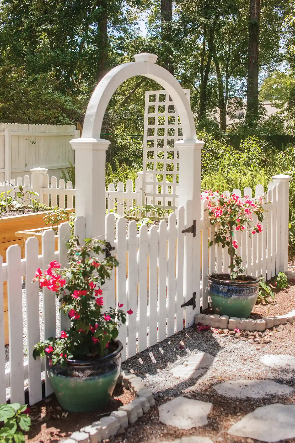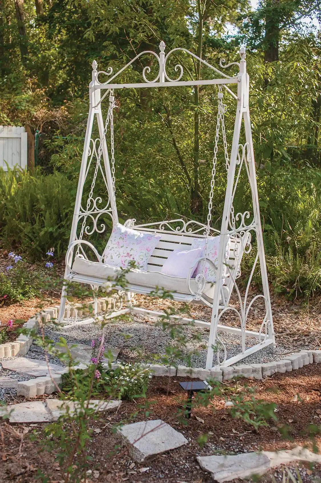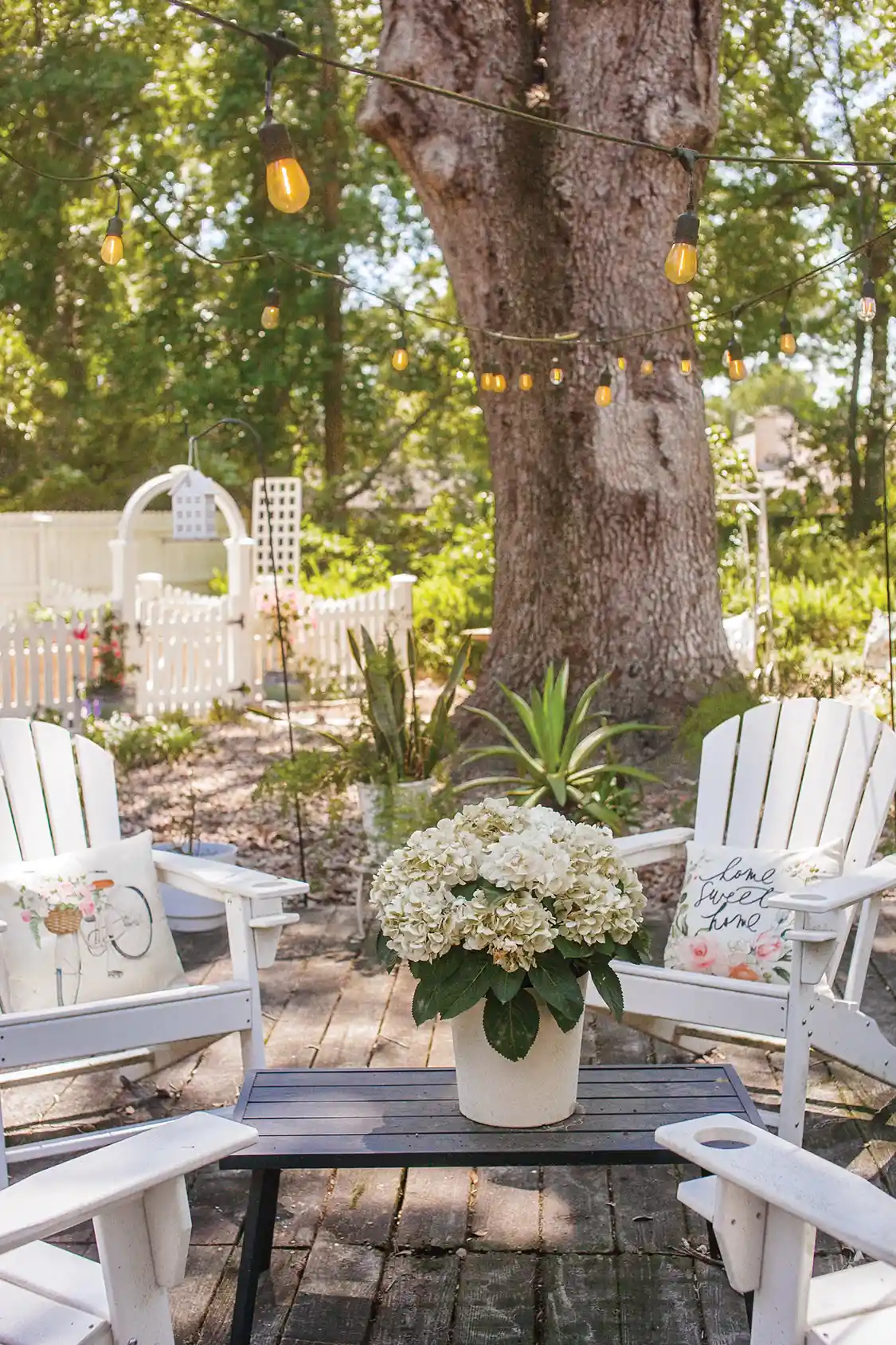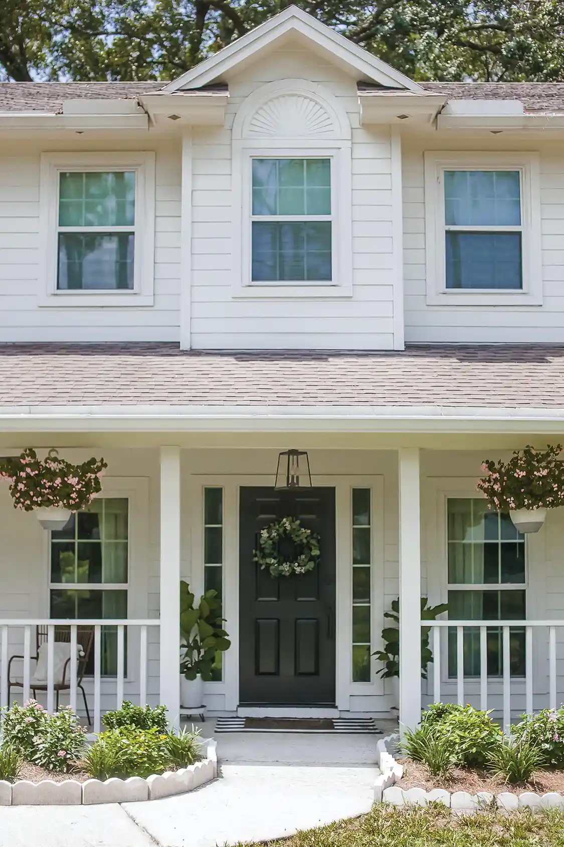 Since the original homeowners had lived in the house for almost 30 years, the décor and style were outdated and needed reworking. “I had to have a vision before we bought the house, because I had to sell it to my husband,” Scarlett says. “It wasn’t our style, so I had to tell him what I envisioned.” That vision included painting both the interior and exterior white, updating the kitchen and bathrooms and working on the outdoor spaces.